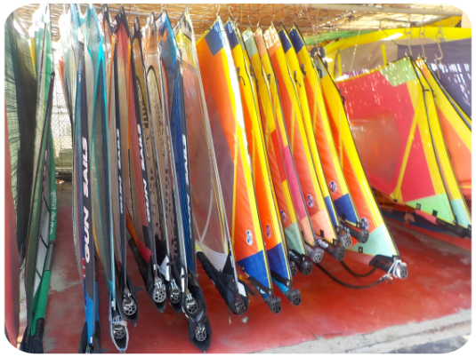 Equipment range made of TAHE SPORT and full rigs GUN SAILS e VDWS by GA sails. Every year we change boards and sails to give you the best choice.