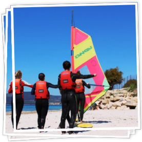 The courses include : full windsurf, wetsuit, lifejacket and beach-simulator.