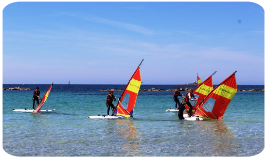 3 lessons of 2 hours we’ll teach you the practical basics of windsurfing: hauling up the rig, starting, tack , jibe .